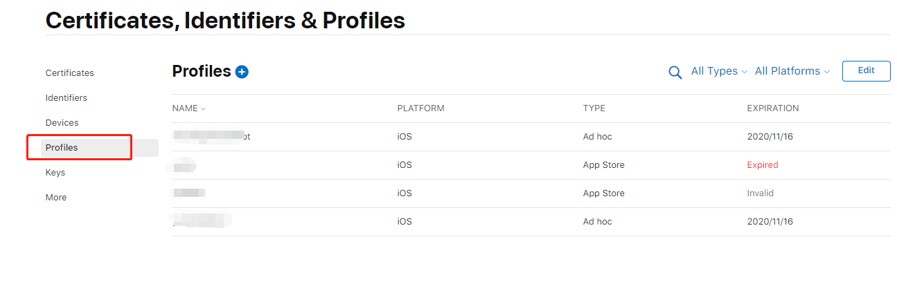 下面再来讲述profile描述文件(.mobileprovision格式文件)如何生成: